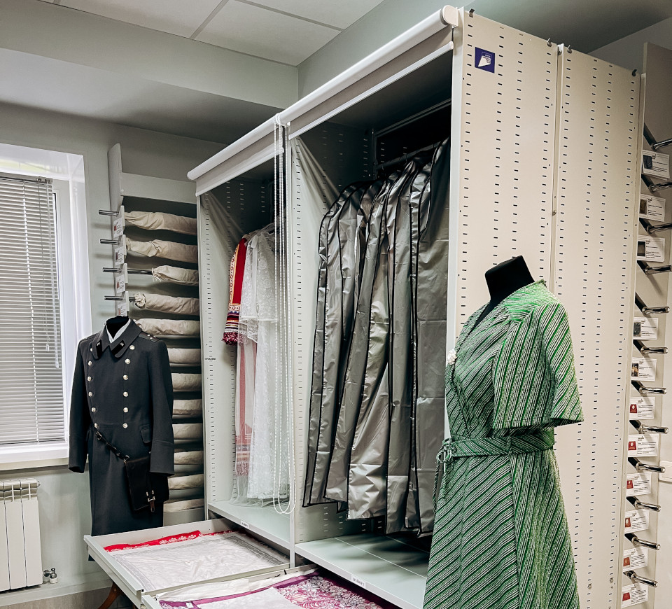 Изготовим передвижные стеллажи для хранения одежды на складе или в фондах музея с доставкой с завода производителя в города ХМАО и России.